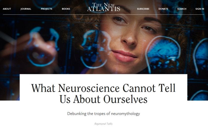 Here, Professor Tallis takes particular delight at demolishing the widely-claimed significance of brain scans for "proving" all sorts of (mis)conceptions about cognition and consciousness.